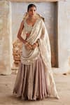 Purple Tissue Sequins Round Neck And Silver Designer Lehenga Set