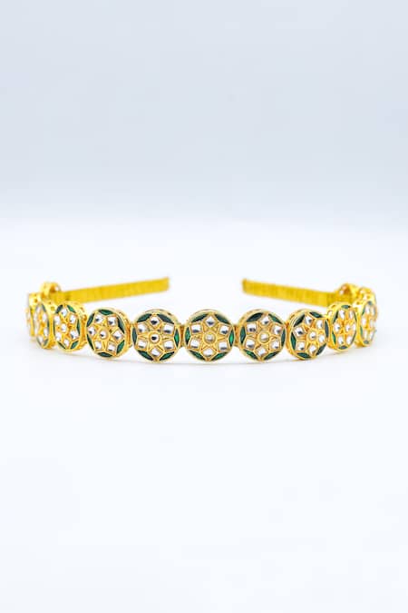 Gold Crystals, Beads Carved Studded Brooch Hairband