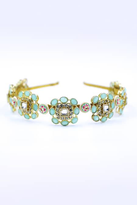 Blue Crystals, Beads Flower Cutwork Embellished Hairband