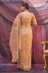 Gold Tissue Embroidery Round Neck Champagne Saree Set
