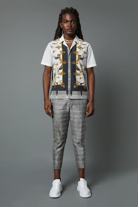 White Cotton Poplin Jewel Dravida Print Shirt