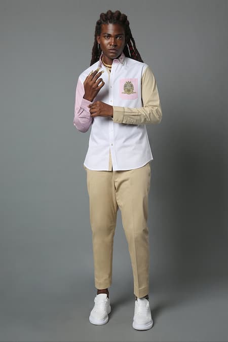 Multi Color Cotton Poplin Heraldic Ilam Colorblock Shirt