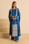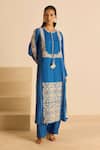 Blue Cotton, Silk Tassels, Pearls Round Neck Embroidered Kurta Set