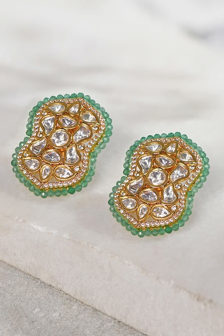 Green Applique, Beads Agate Embellished Earrings