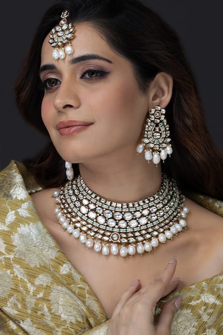 Gold Plated Pearls, Stones Noorani Embellished Necklace Set