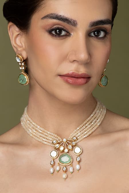 Green Beads, Pearls, Stones Ocean Mist Long Necklace Set
