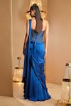 Blue Net, Satin Beads Sweetheart Neck And Pre-draped Saree Set