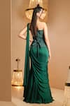 K & A By Karishma And Ashita_Green Sweetheart Neck Bottle Pre-draped Saree And Corset _Online_at_Aza_Fashions