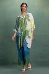 Green Cotton, Silk Collared Printed Kurta And Pant Set