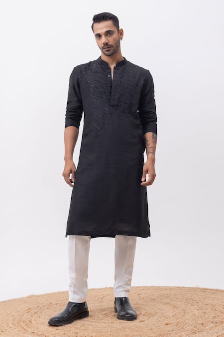 Black Silk, Cotton Lightning Kurta And Pant Set