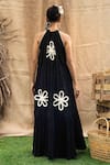 Black Cotton Halter Neck Maxi Dress With Floral Embroidery