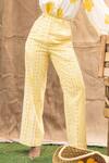 White Cotton Embroidery Collared Butter Yellow Floral Print Pant Set