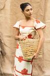 Orange Cotton Embroidery Square Neck Floral Midi Dress