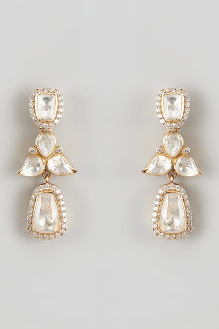 White Crystals, Diamonds Moissanite Polki Drop Earrings