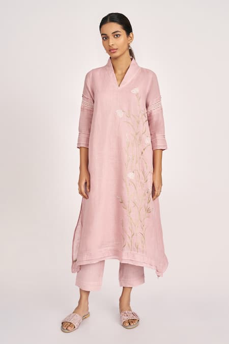 Pink 100% Linen Embroidery Thread Applique V Dew Drop Fly Free Tunic
