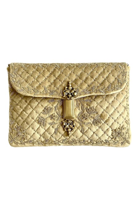 Gold Embellished Delphine Velvet Embroidered Clutch