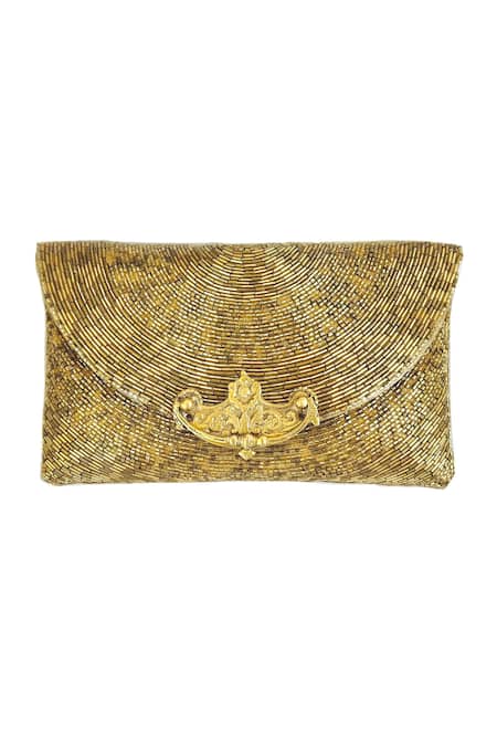Gold Cutdana Demilune Swerve Embroidered Clutch