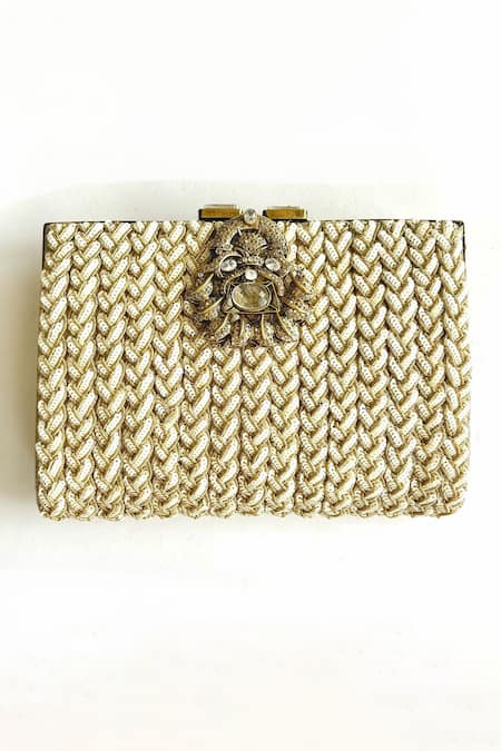 White Zardosi Tresse Metallic Sequin Embellished Clutch