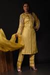 Yellow Organza, Modal, Satin Embroidery, Sequins, Floral Garden Kura Pant Set