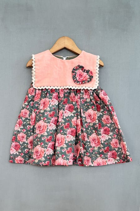 Pink Cotton Fabric Flowers Vintage Floral Print Dress