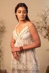 Label Reyya_Off White Cotton, Rayon Embroidery, Lace, Tassels Geometric Print Top And Pant Set _Online_at_Aza_Fashions