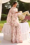 Ivory Silk, Organza Embroidery Collared Floral Printed Kurta Set