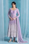 Purple Georgette, Satin Embroidery Round Neck Soft Anarkali Kurta Set
