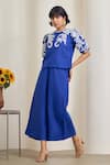Blue Cotton, Linen Embroidery Round Neck Top And Pant Set