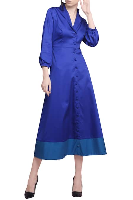 Blue Lapel Peak Flared Jacket Dress