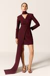 Maroon Crepe, Spandex V-neck Galaxy Asymmetric Dress