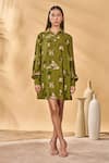 Olive Green Crepe, Silk Collared Miniature Dreams Shirt Dress