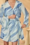 Blue Crepe, Silk V-neck Rhythmic Curves Playsuit