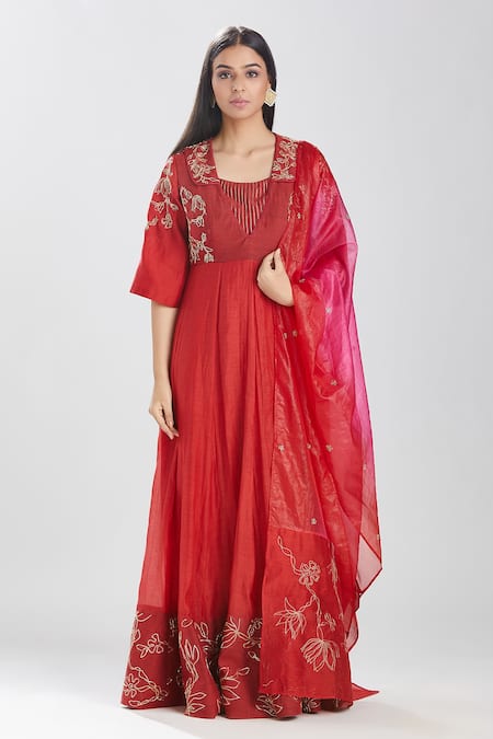 Red Organza, Chanderi Zardozi Work Surkh Rama Embroidered Set