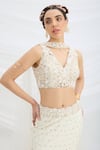 Beige Viscose, Net, Silk Sequins, Beads V-neck Embroidered Fusion Lehenga Set