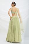 Green Chiffon, Net, Viscose Sequins, Embroidery V-neck Pista Lehenga Set