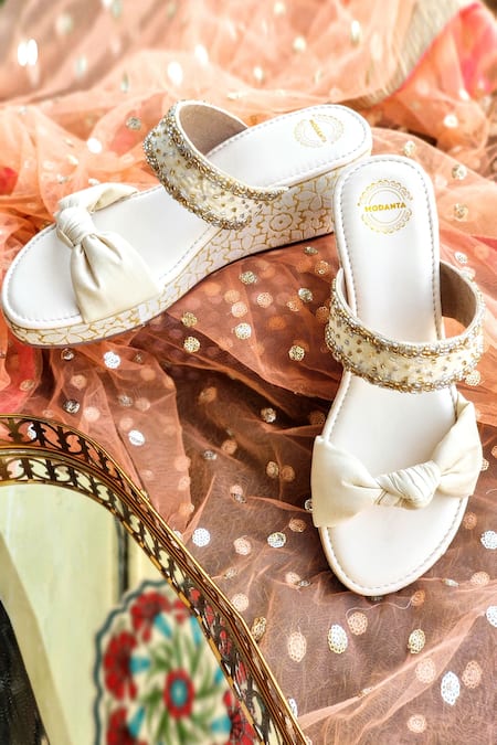 Buy_Modanta Footwear_Cream Embroidered Knotted Wedges _at_Aza_Fashions