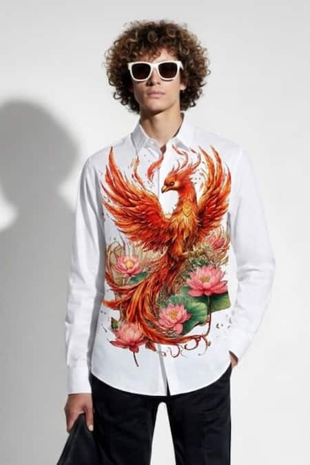 White Cotton Falcon Print Shirt