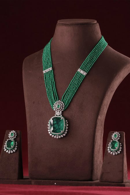 Green Beads, Stones Embellished Pendant Necklace Set