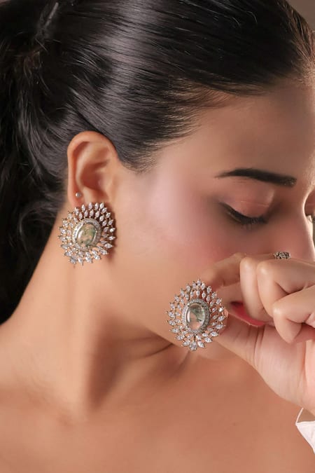 Green Stones, Crystals Victorian Statement Studs