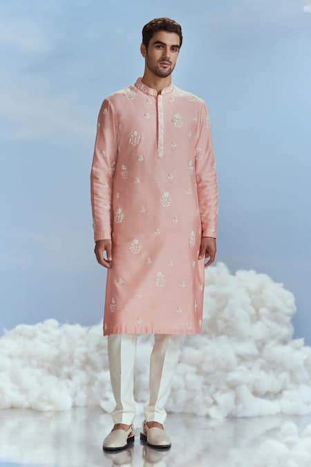 Peach Spandex Embroidery Mehtab Floral Kurta With Pant