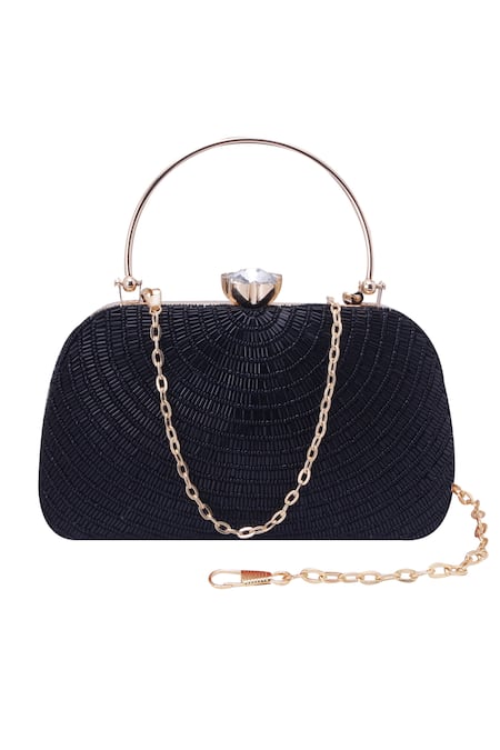 Black Beads, Crystals, Chains Beaded Clutch Bag With Detachable Sling