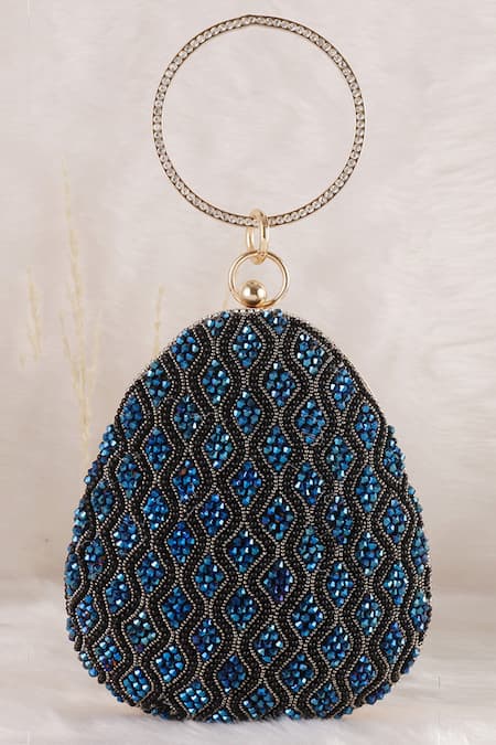 Black Beads, Crystals, Rhinestones, Embellished Clutch With Detachable Sling