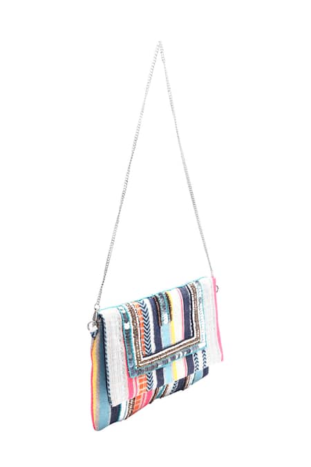 Multi Color Beads, Sequins Striped Embellished Clutch