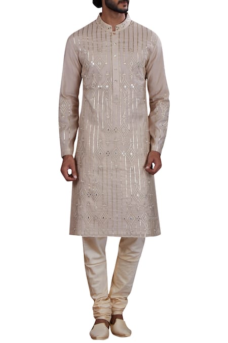 Cream Cotton Silk, Blended Chanderi Kurta Set