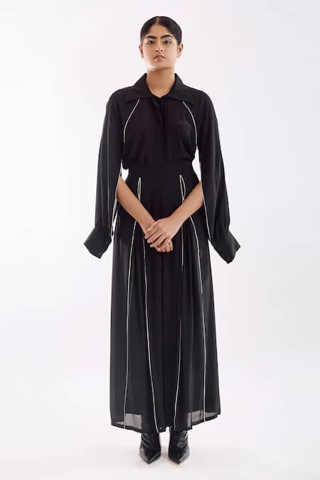 Black Georgette, Satin Collared Cape Coord Pant Set