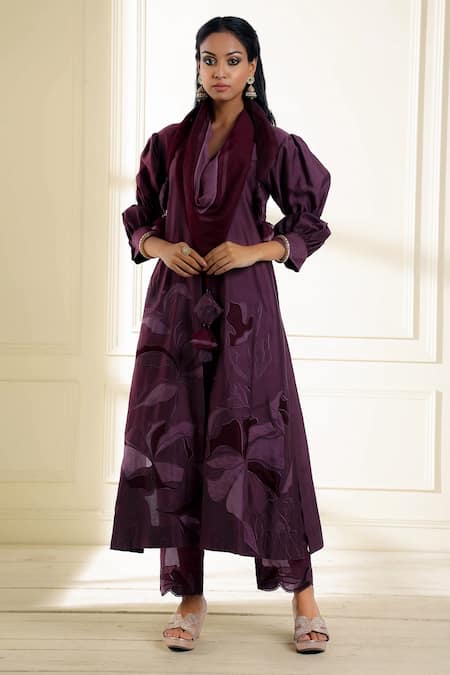 Purple Chanderi, Organza Embroidery, Cut Work, Safina A-line Kurta Set