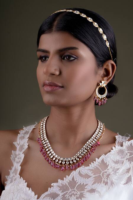 Buy_Osvag India_Gold Plated Diamonds, Beads Drop Embellished Necklace Set _Online_at_Aza_Fashions