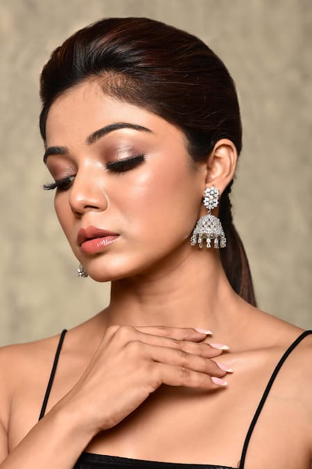 White Semi Precious Stones Cubic Zirconia Studded Jhumkas