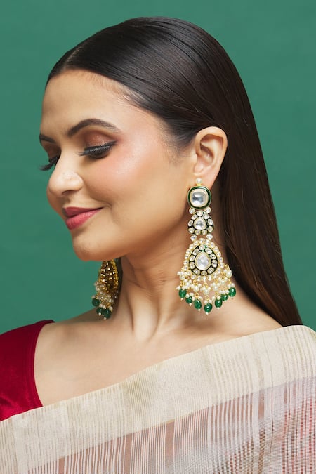 Gold Plated Metallic Thread, Beads Kundan Embellished Dangler Earrings