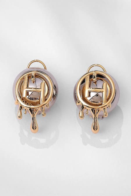 Silver Plated Cut Work Drip Oh Dual Tone Midi Studs